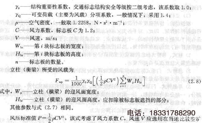 交通标志所承受的荷载包括两部分:永久荷载与可变荷载。永久荷载即交通标志结构的自重;可变荷载主要为风载。